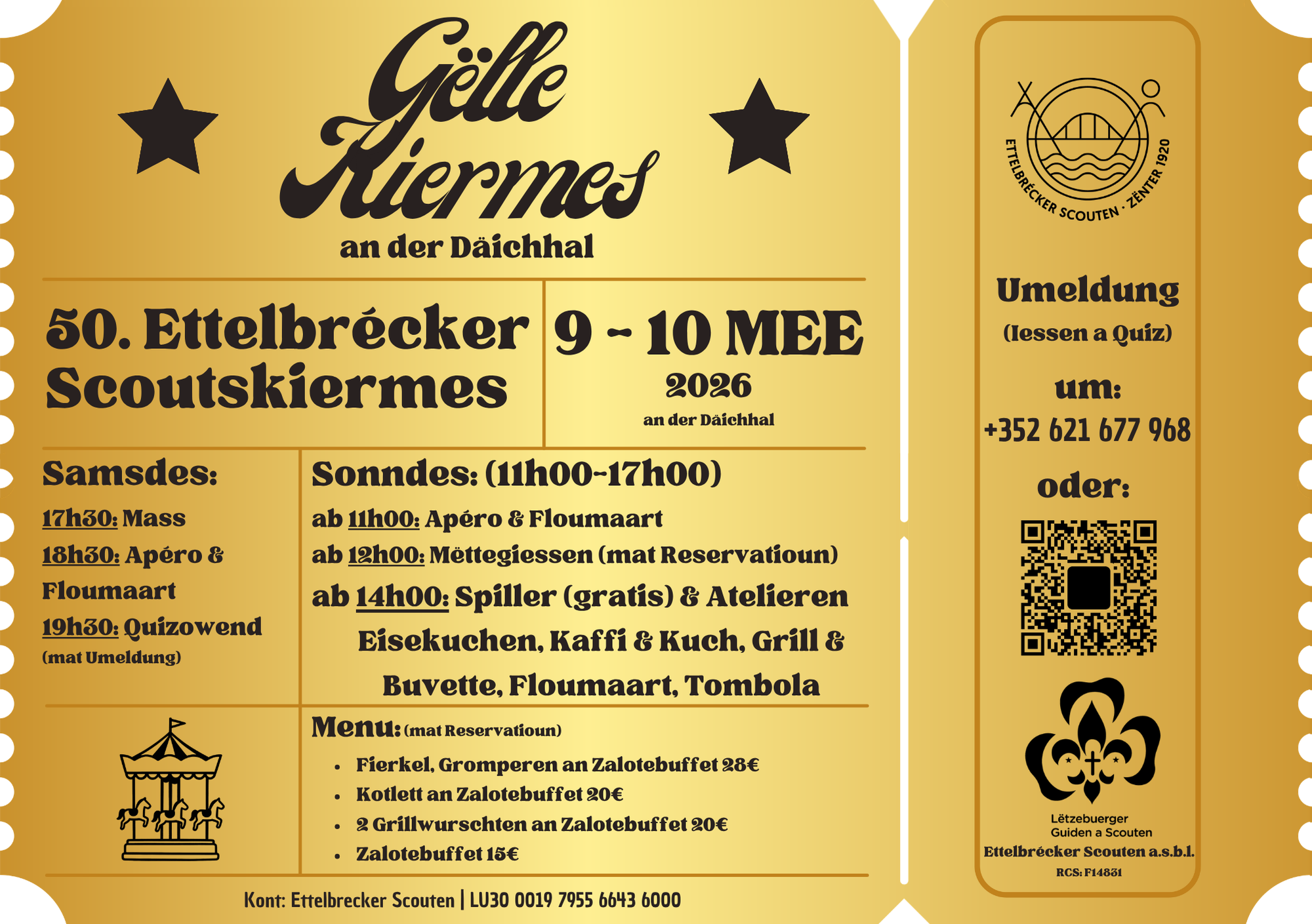 Dëst Joer ass eise Floumaart op Samsdes Owes no der Scoutsmass, a Sonndes vun 11:00 bis 17:00.